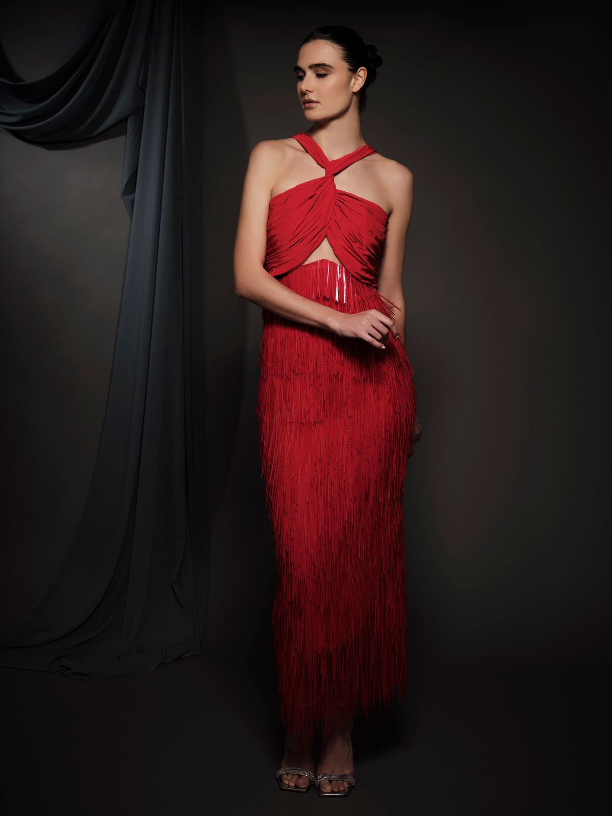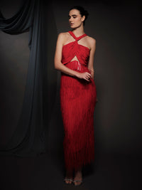 red stick sequin dress