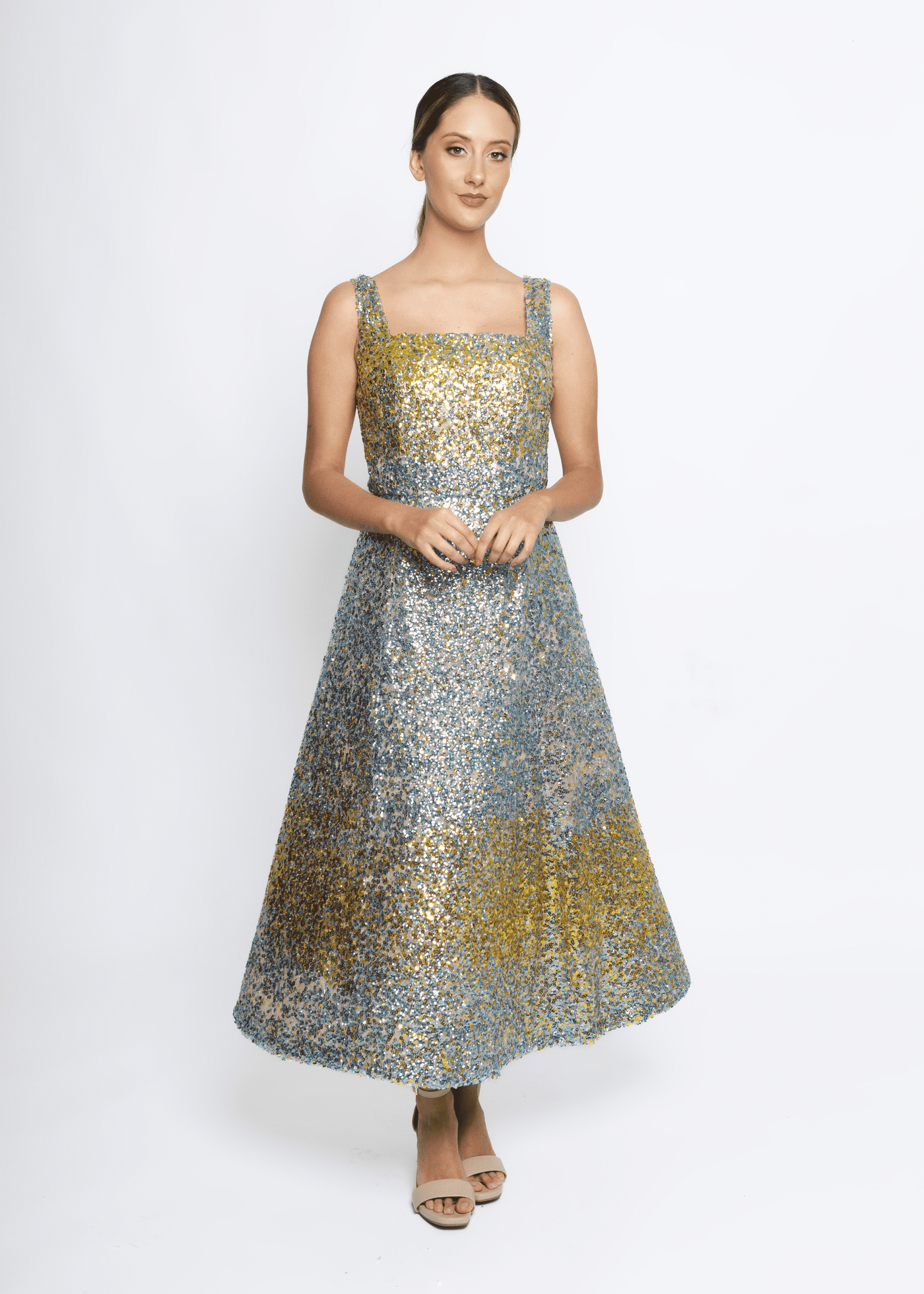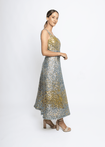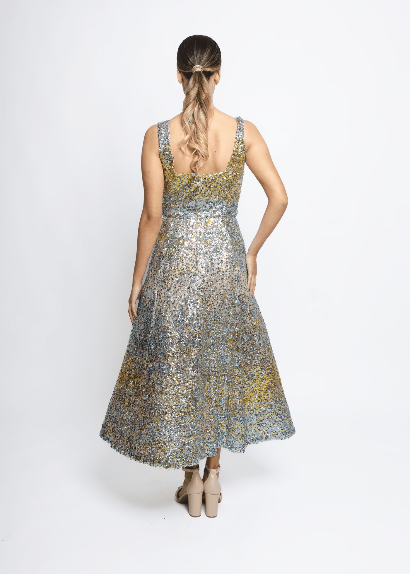 Midi dress with paillette embroidery