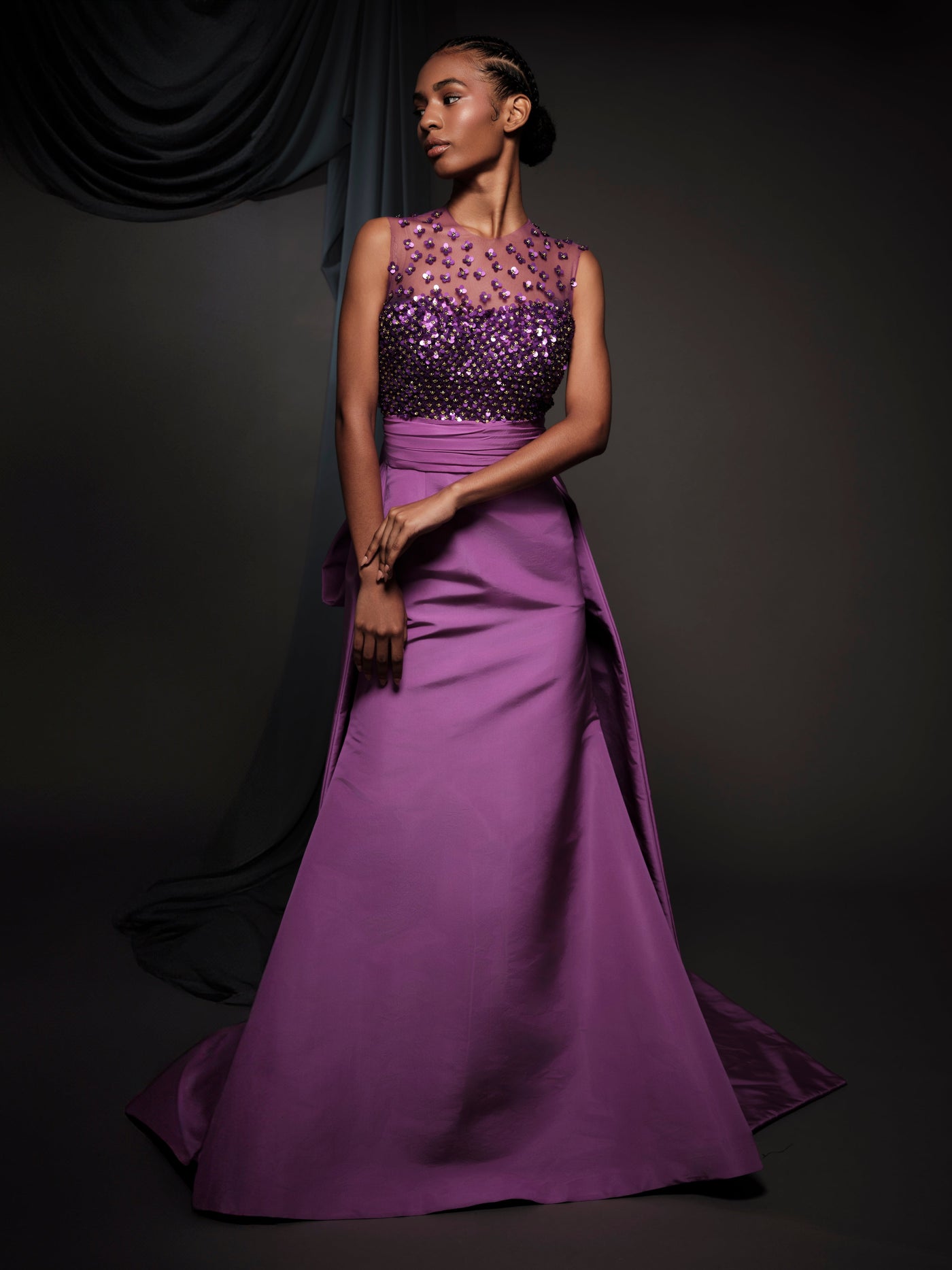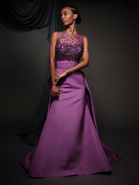 violet embroidered corset dress