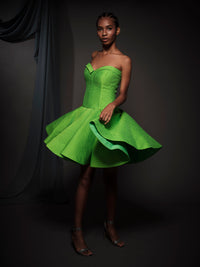 Vestido de fiesta de jacquard sin tirantes en mezcla de seda en verde neón